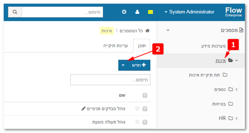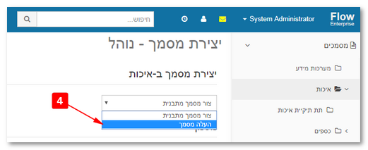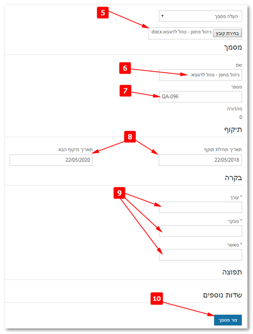 על מנת להעלות מסמך חדש למערכת יש לבצע את הפעולות הבאות: