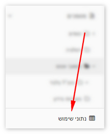 בבר הימני למטה תוכל לצפות ב"נתוני שימוש" ולהתרשם מאחוזי צפייה בנהלים ומכמות העדכונים המבוצעים לפי מחלקות.