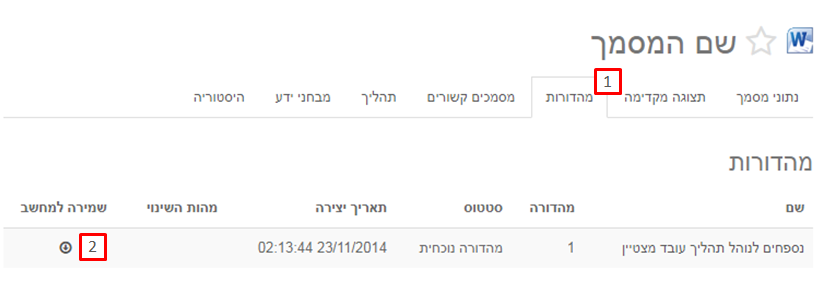 1. במסך נתוני המסמך: לחיצה על לשונית (טאב) "מהדורות"